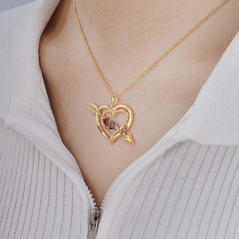 Exprese una elegancia infinita con el diseño de collares con piedra natal y nombre de corazón con flecha de Cupido. El collar personalizado con nombre y piedra de nacimiento se prepara como un regalo especial para esposa, novia o pareja. Es el regalo perfecto para cumpleaños, graduaciones, San Valentín, aniversarios o celebraciones de bodas.