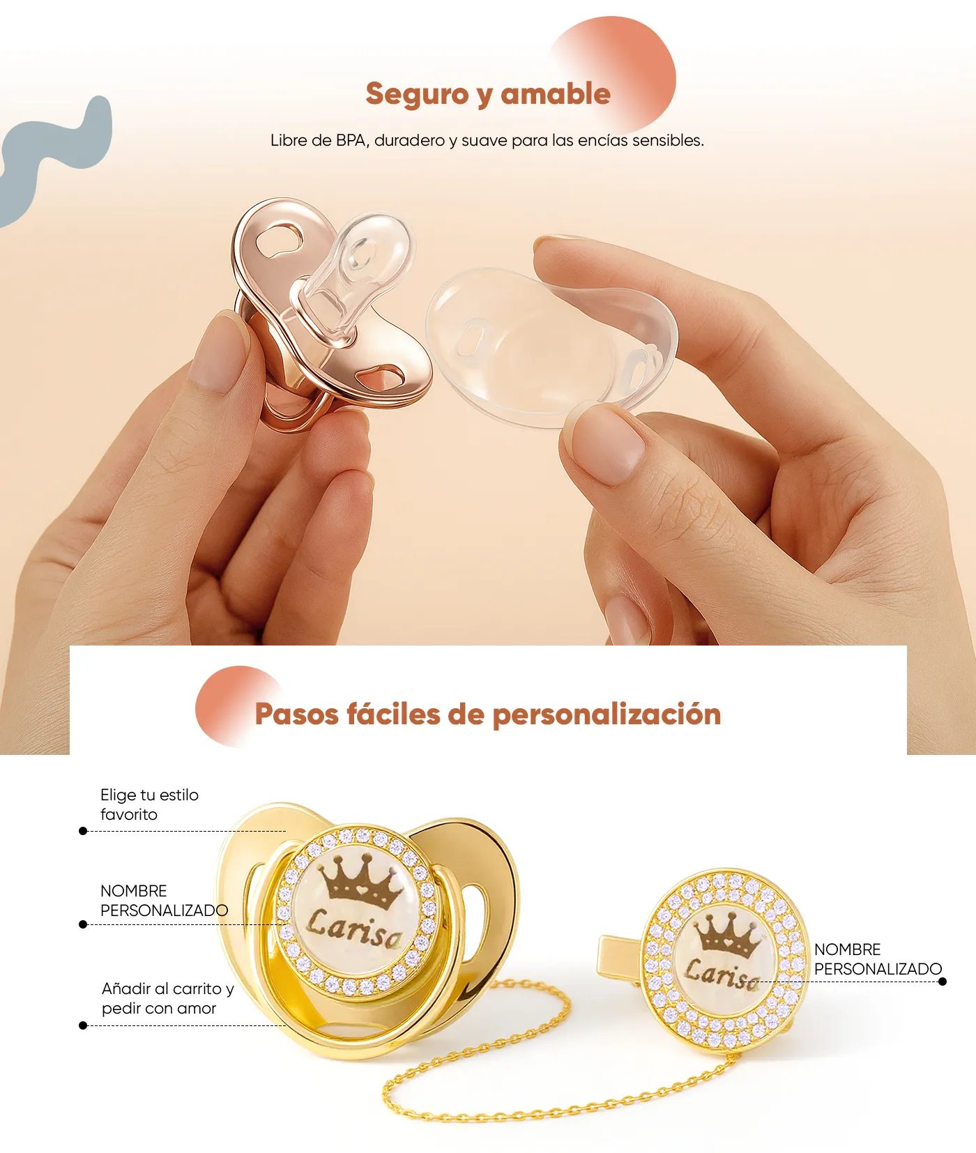 ¡Haz que los artículos esenciales de tu bebé sean seguros, elegantes e inolvidables con este lujoso chupete personalizado!
