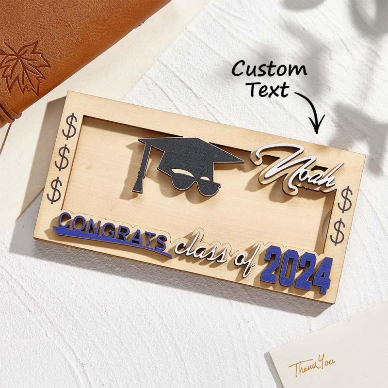 Celebre la promoción de 2024 con un exclusivo portamonedas de madera para graduación cortado con láser con nombre personalizado. Presenta un diseño elegante con una gorra de soltero impresa personalizada y el nombre y año del graduado para darle un toque especial. Fabricado con madera confiable y liviana, este moderno clip para billetes es una alternativa inteligente a las tradicionales tarjetas de graduación.