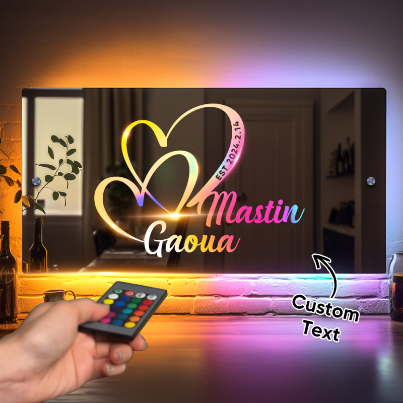 Nombre Personalizado Signo De Espejo Texto Personalizado Led Luz Multicolor, Signo De Corazón Con Nombres Y Fecha Regalo De Aniversario Para Pareja
