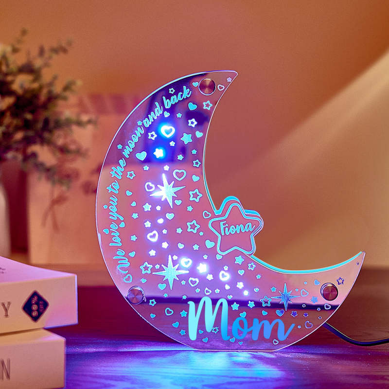 ¡Esta luz de espejo lunar personalizada es el regalo perfecto para las mamás! Personalízalo con el nombre de un miembro de la familia para darle un toque único. Las luces LED crean un ambiente cálido y reconfortante en cualquier habitación. Celebre a mamá con estilo con este regalo único y pensado.