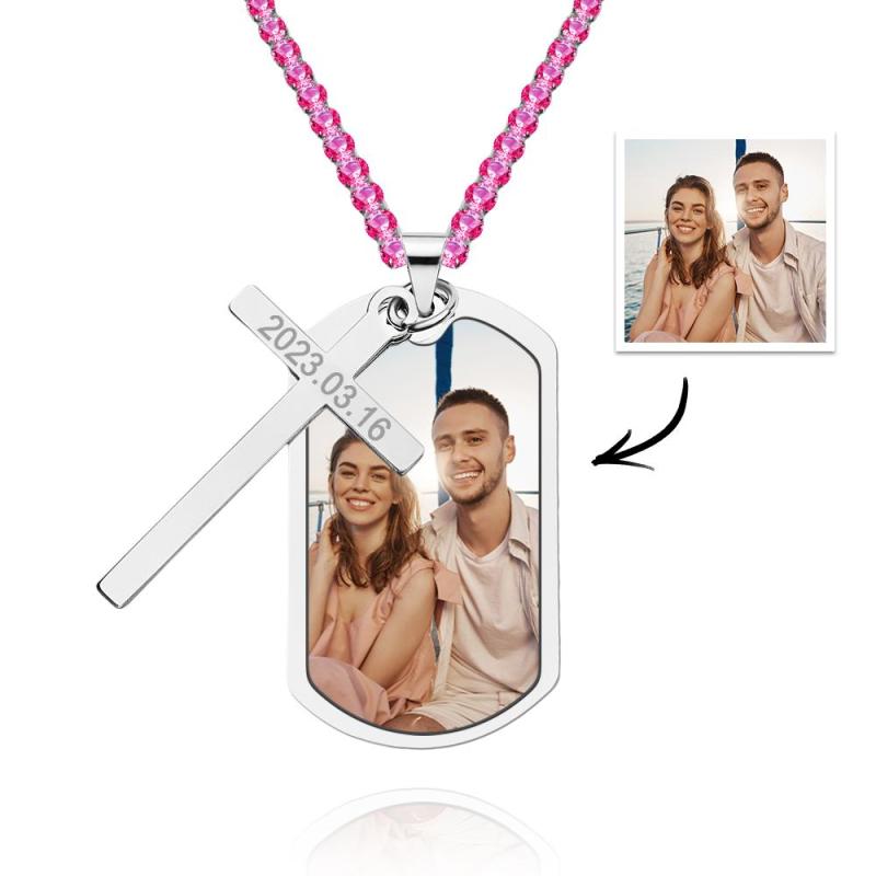 Collar Personalizado Para Hombre Con Foto Personalizada Y Grabado, Cadena De Tenis