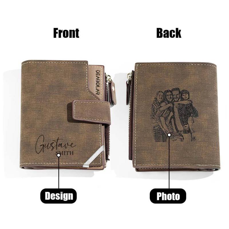 Esta billetera personalizada para hombre es un regalo único y reflexivo para el hombre especial de su vida. Elaborado con piel de alta calidad, presenta un diseño plegable y se puede personalizar con una foto y un texto. Perfecta para el Día del Padre o un cumpleaños, esta billetera combina funcionalidad con sentimentalismo.