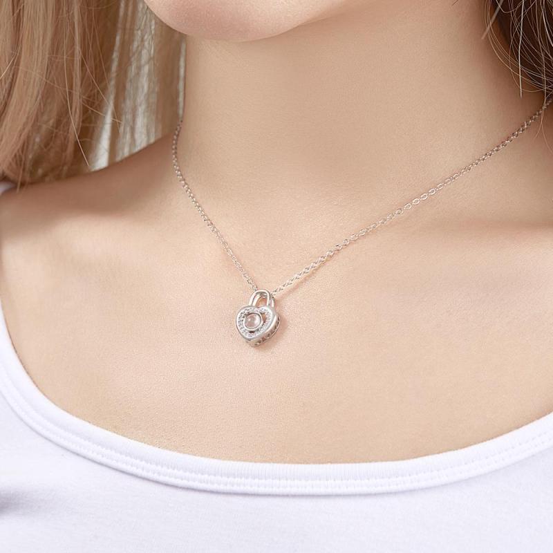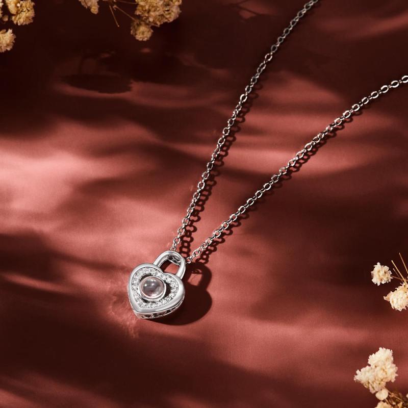 Dile a alguien especial cuánto lo amas con este elegante collar que proyecta fotos. Simplemente sostenga el colgante hacia una fuente de luz y proyectará la foto. Un regalo perfecto para cumpleaños, aniversarios, bodas, Día de la Madre, Día de San Valentín y Navidad. Se recomienda quitarse el collar cuando esté cerca del agua o en cualquier circunstancia en la que el collar pueda mancharse de agua o aceites corporales.