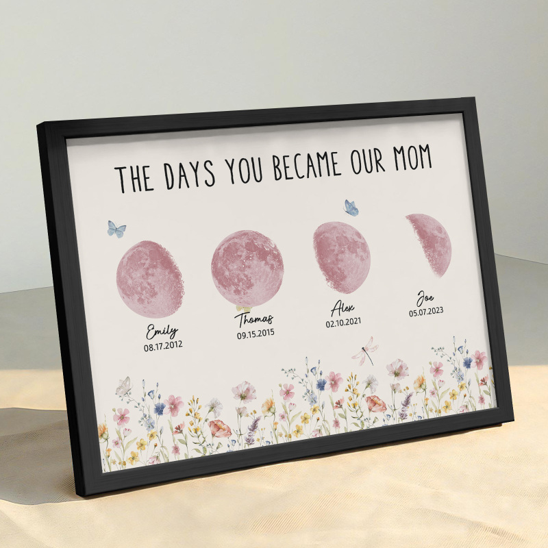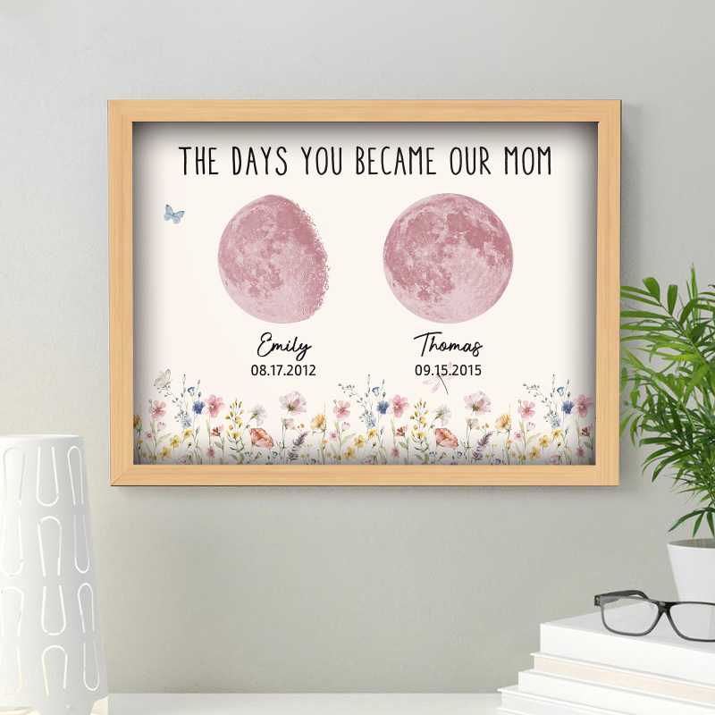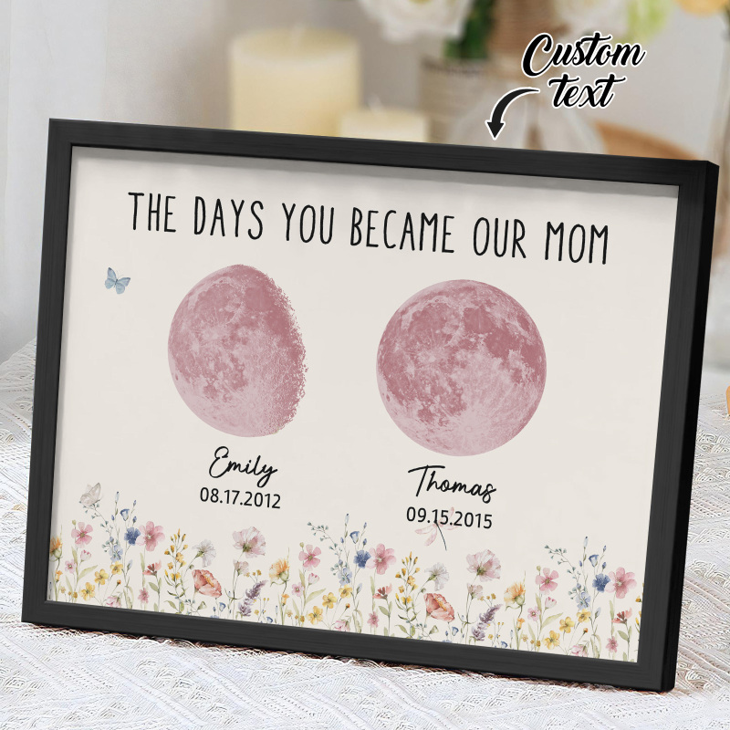 Fase Lunar Rosa Personalizada, Luna De Nacimiento Personalizada, Hermosa Colina De Noche Con Nombres De Niños, Regalos Ideales Para El Día De La Madre.