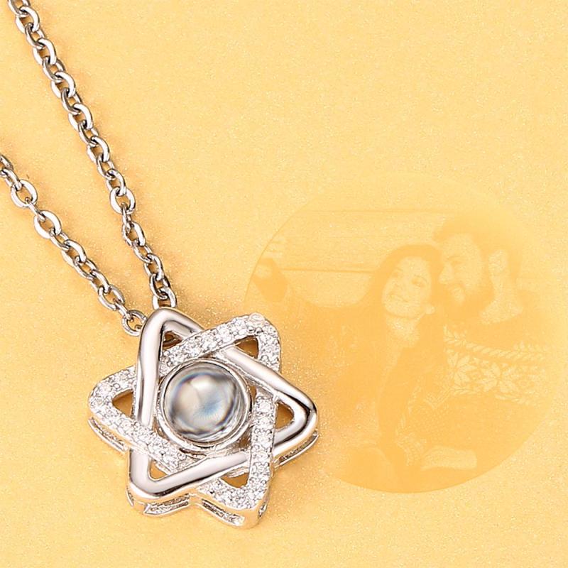 Collar Personalizado con Foto de la Proyección Collar de Seis Estrellas - Plata