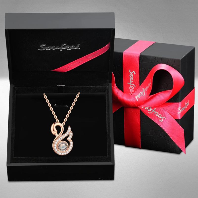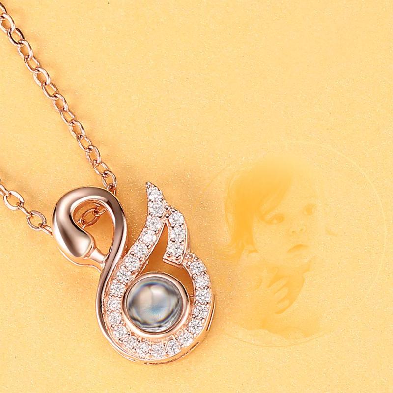 Collar Personalizado con Foto de la Proyección Collar de Cristal de Cisne - Oro Rosa