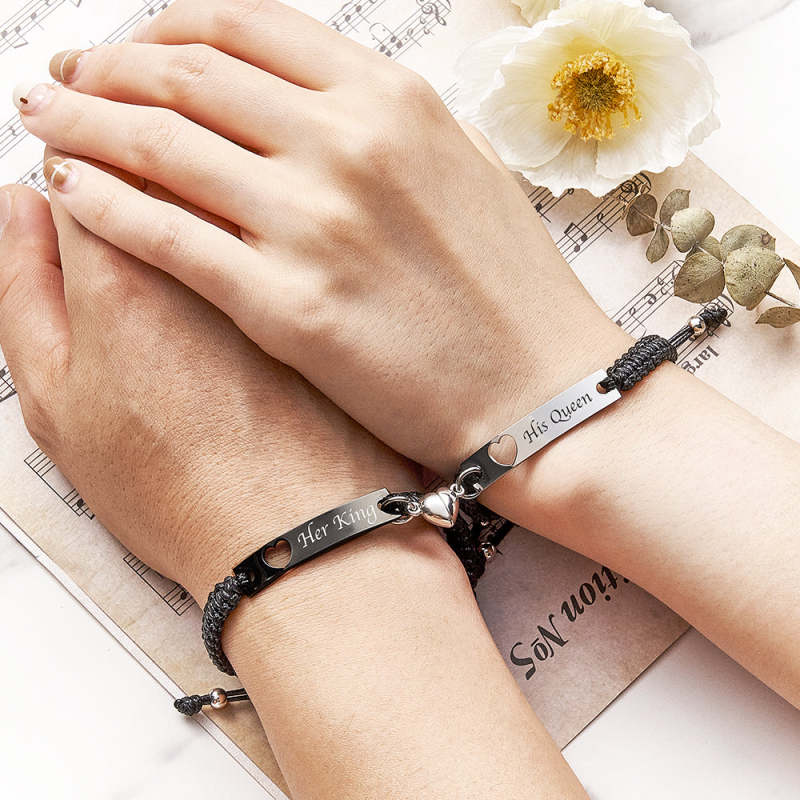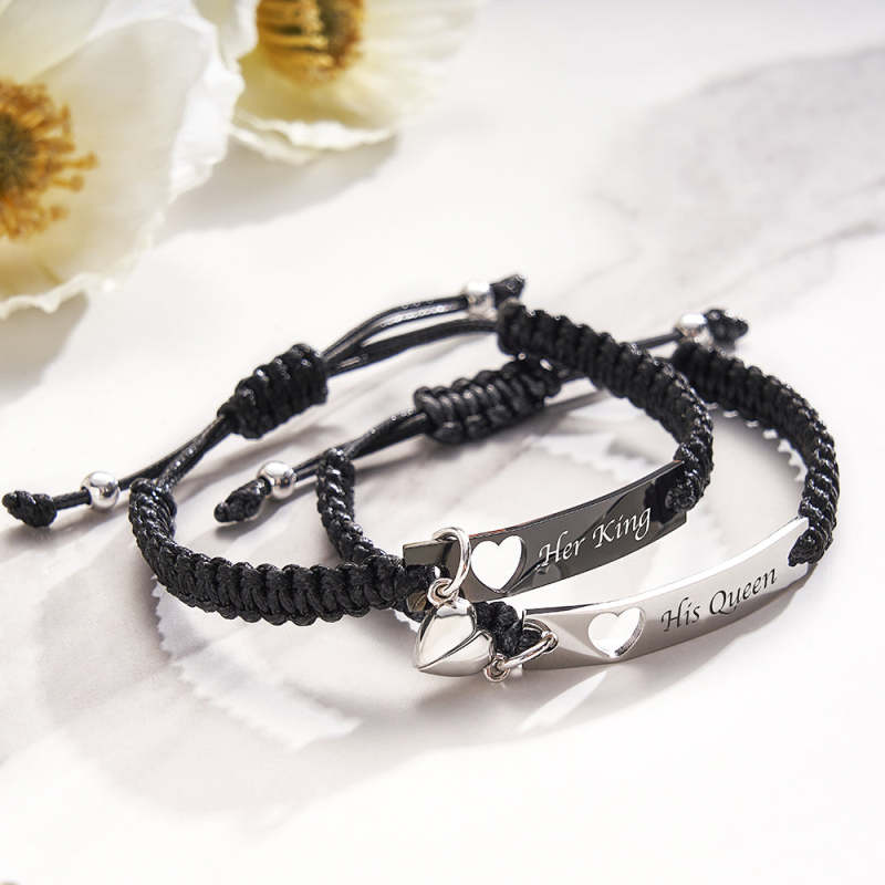 Pulsera trenzada especial de atracción mutua, que viene con un par de pulseras en forma de corazón. No importa dónde estés, una vez que juntemos las dos pulseras, se atraerán mutuamente cuando se acerquen. Estas pulseras para parejas simbolizan el amor eterno y la amistad entre amantes o amigos.