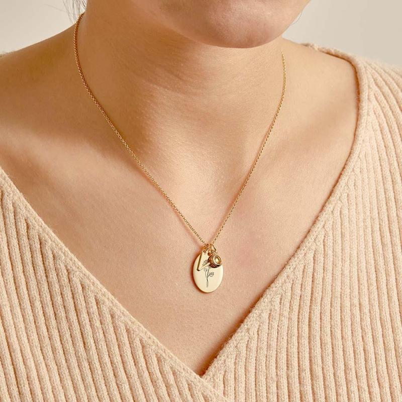 Perfección personalizada: personaliza tu collar con la piedra de nacimiento, la flor de nacimiento y el texto que elijas, creando un accesorio verdaderamente único que refleja tu historia única.