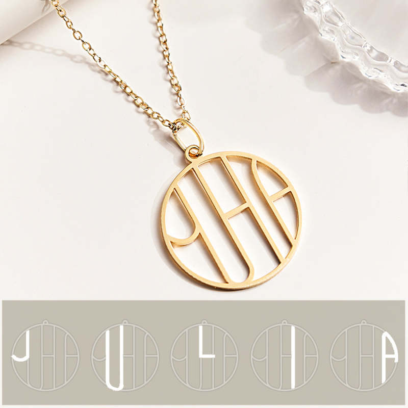 Este collar con monograma y nombre es único para cada pieza. Usted ingresa el nombre y nuestro talentoso diseñador lo diseña para usted.Al combinar letras en un logotipo especial, este collar se convierte en un accesorio significativo que el destinatario apreciará durante años.