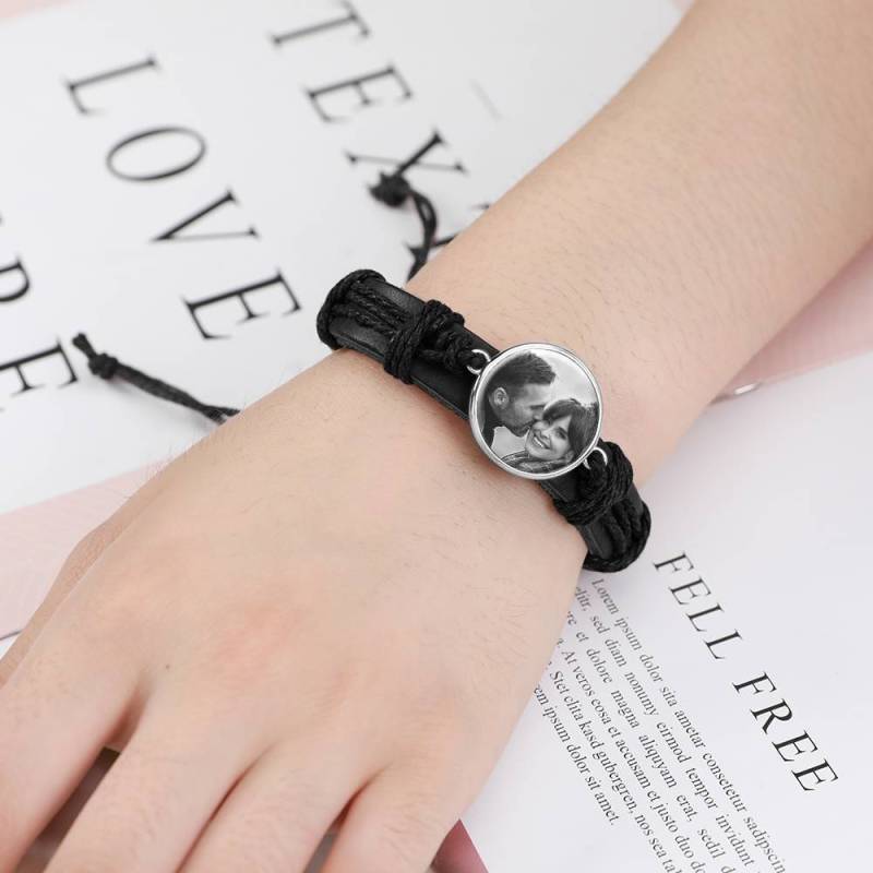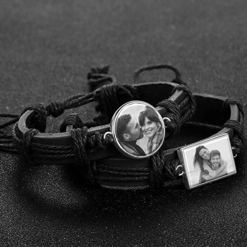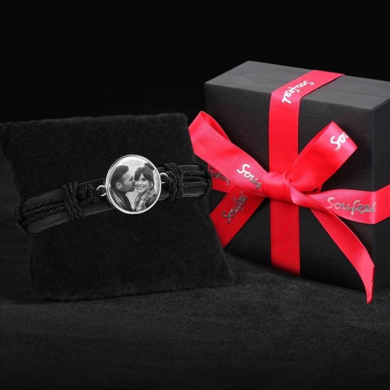 ?Hay ciertas imágenes o personas que te hacen sentir cálido y confuso por dentro? Si es así, ?nuestras pulseras con fotos grabadas son imprescindibles para ti! Soufeel ofrece una amplia gama de pulseras con dijes fotográficos que puede personalizar con las imágenes que elija. Coloque fotos de sus hijos, su pareja, sus mascotas o cualquier otra cosa que le guste mirar. Hay diferentes pulseras para elegir, como pulseras de cuero y pulseras de metal liso. ?Busca un regalo perfecto para un ser querido? Entonces esta pulsera de cuero con foto es la respuesta. ?Consígale uno y observe cómo se derrite su corazón! Pulsera con Foto, Regalo de Recuerdo Cuero Negro Platino Plateado en forma de Cuadrado - Fotocopiado.