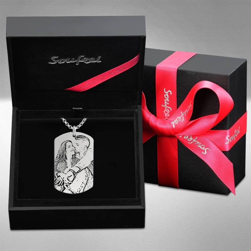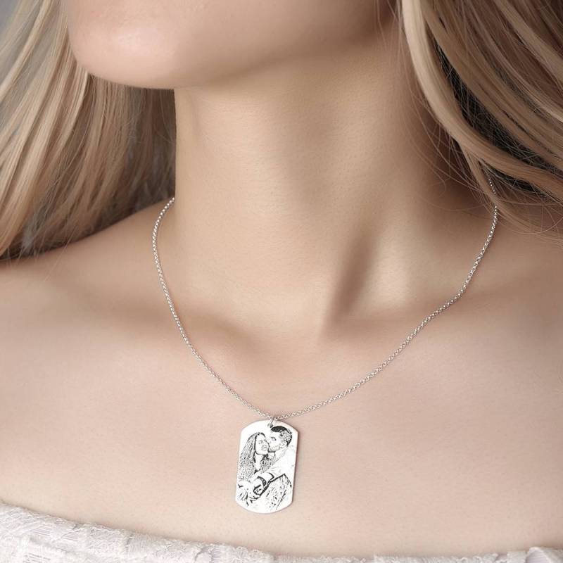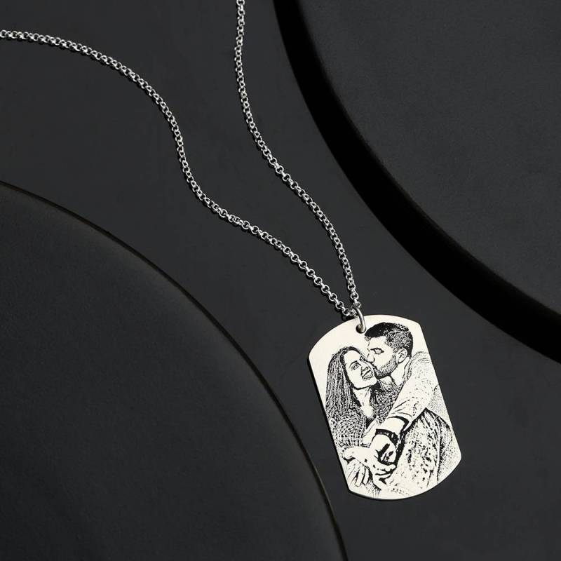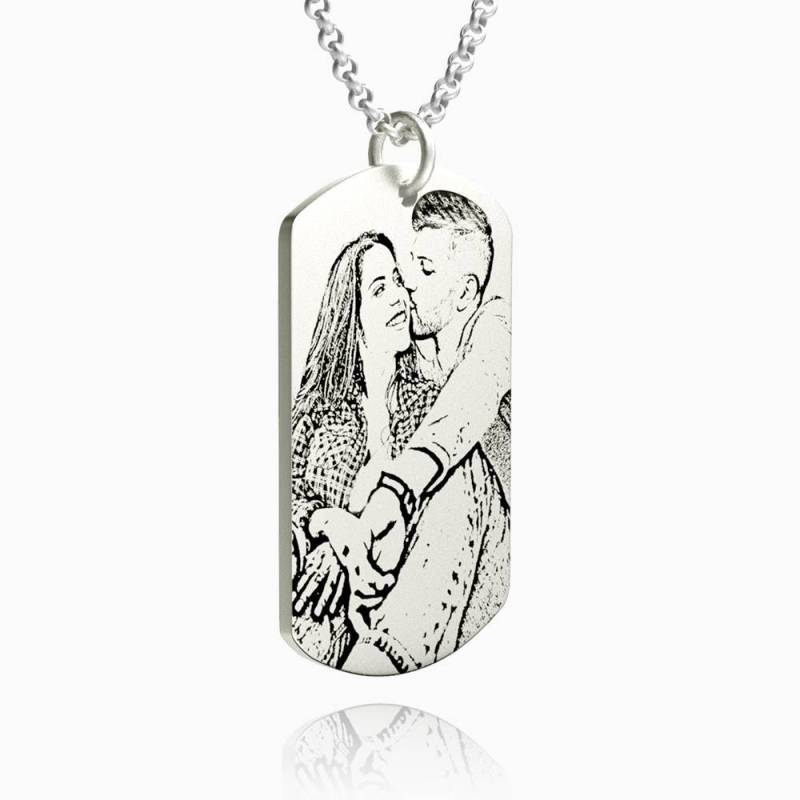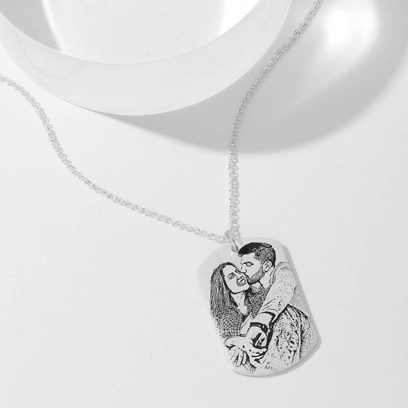 Mujeres Collar con Etiqueta de Foto Grabable con Grabado Plata