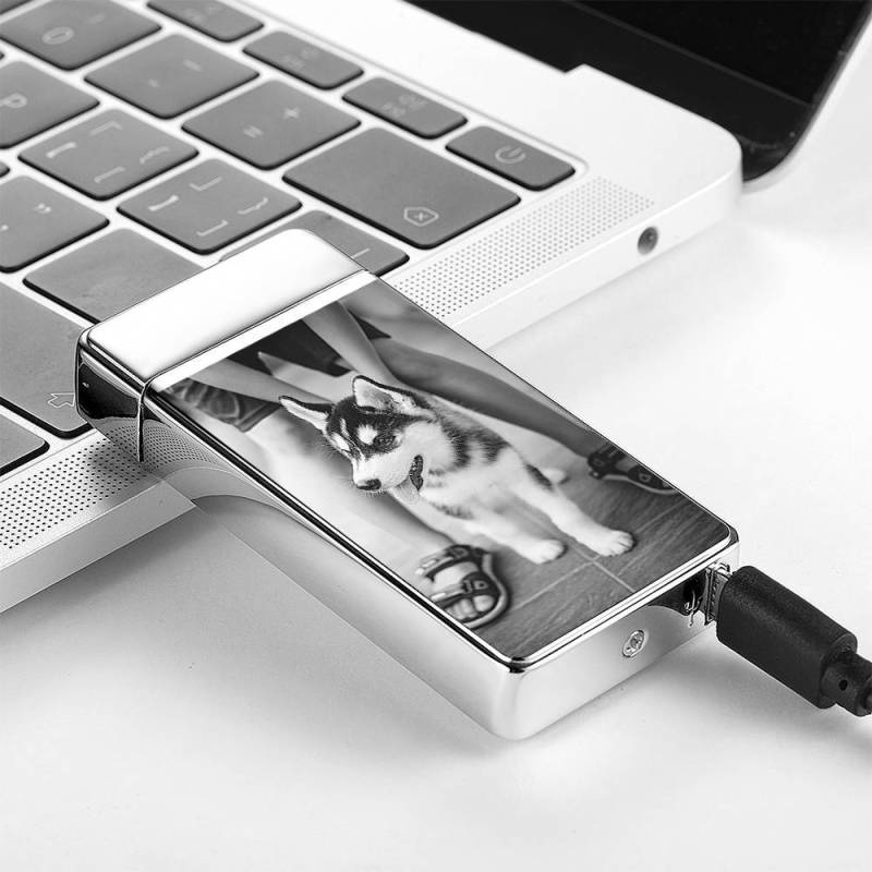 Foto Encendedor, Personalizado Foto Grabada Encendedor Plateado Linda Mascota