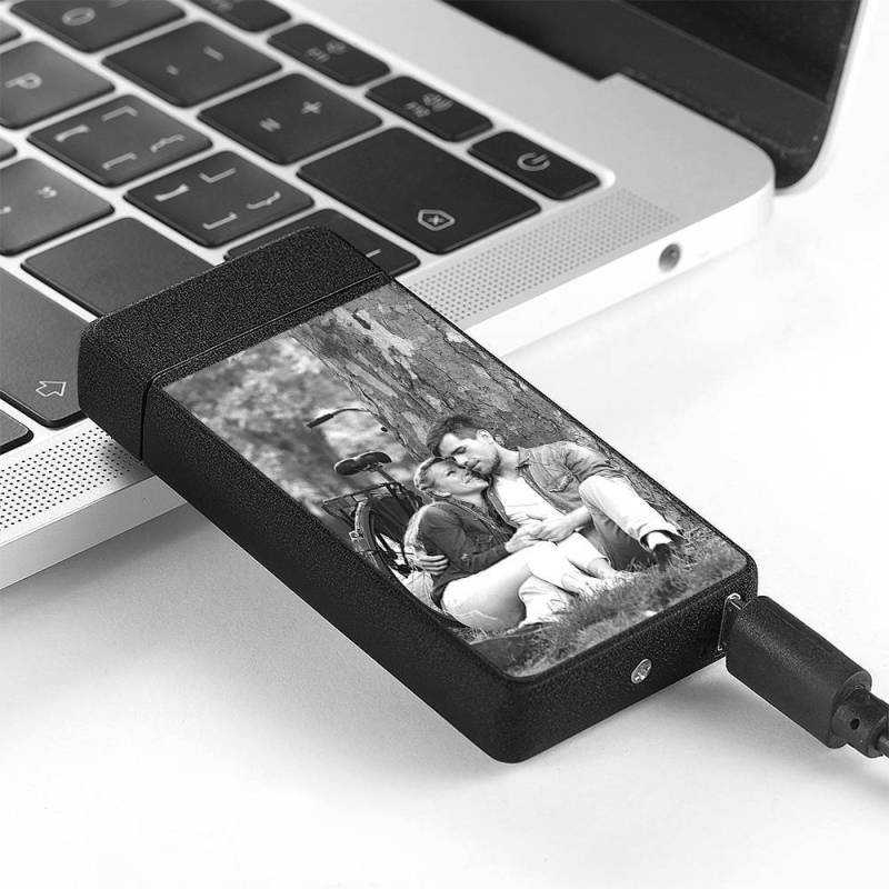 Foto Encendedor con Grabado Eléctrico Encendedor Exfoliante Negro Regalo de Pareja