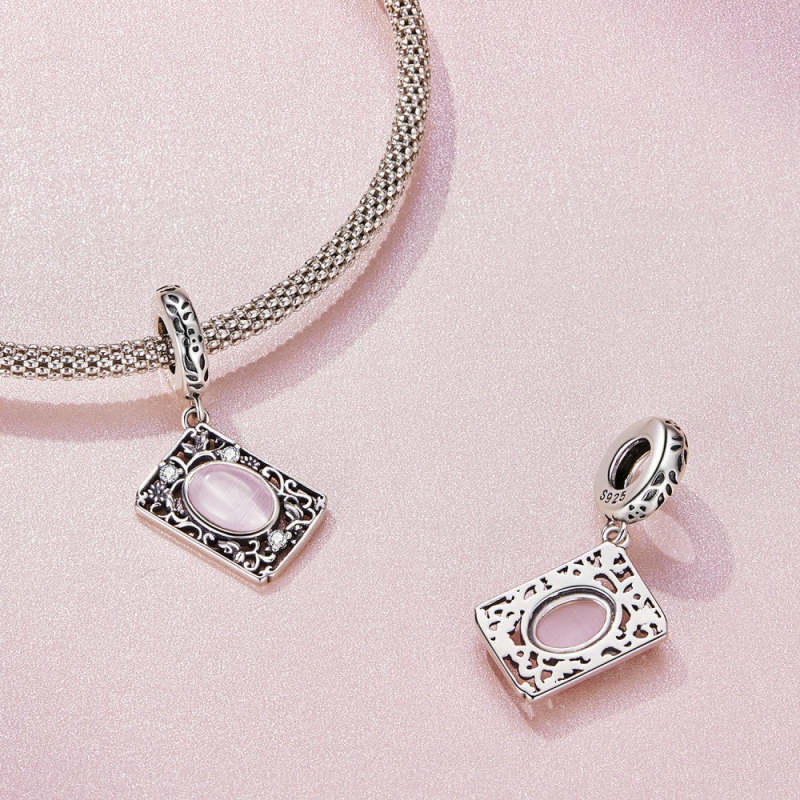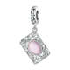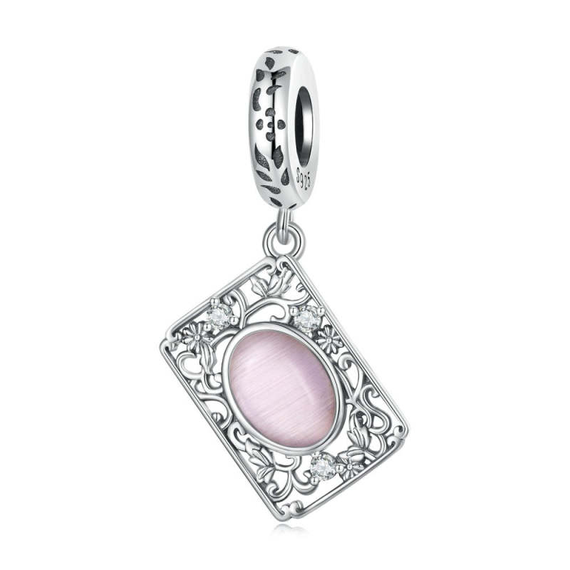 Ciondolo Pendente Con Motivo Floreale In Vetro Rosa, Argento