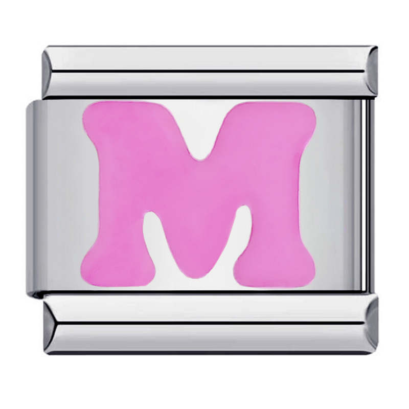 Charm Italiano Letra M Rosa Para Pulseras Italianas Charm Composable Link