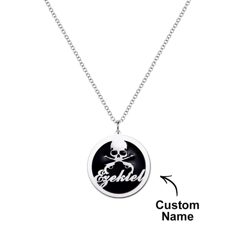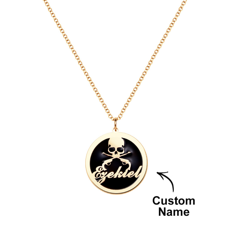 Experimenta el encanto de alta mar con nuestro collar con colgante de calavera y huesos de moneda pirata. Elaborado con impecable precisión, este medallón es una exquisita pieza de joyería para hombre, perfecta para aventureros. Disponible en opciones de plata, oro y oro rosa, este collar personalizado será un regalo impresionante.