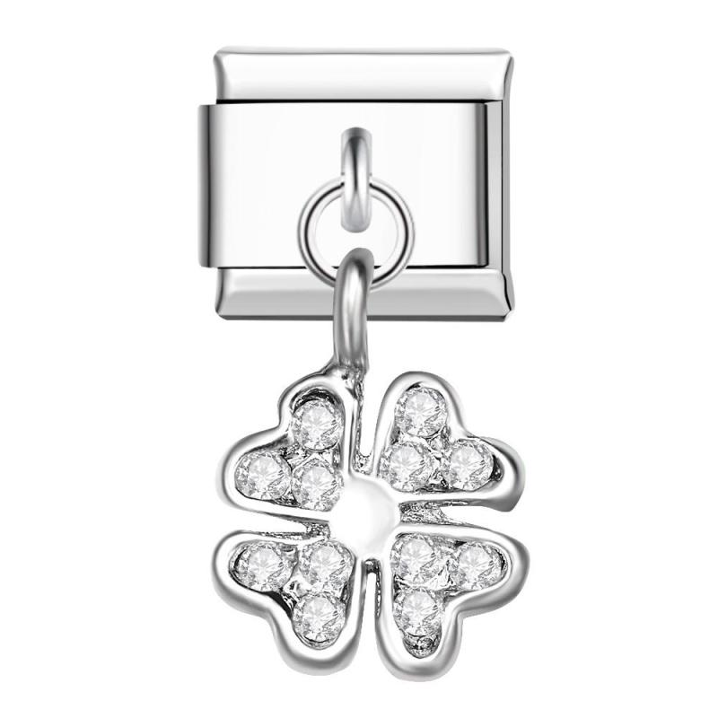 Charm Italiano Trébol De Cuatro Hojas En Platino Para Pulseras Italianas Charm Enlace Componible