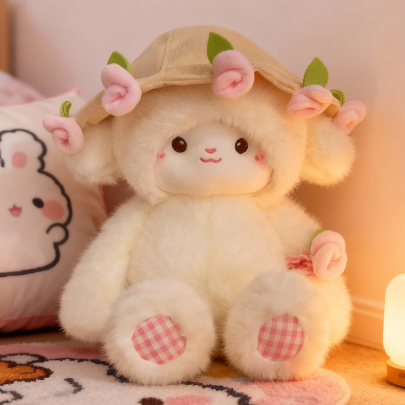 🐑 Adorable cordero de peluche con un sombrero extraíble con rosas