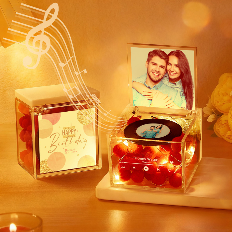 Aporta un toque de nostalgia y personalización a tu espacio con este Mini tocadiscos de música con foto personalizada y luz. Diseñada para parecerse a un tocadiscos vintage, esta caja de música es más que una simple pieza decorativa: es un recuerdo entrañable que combina tus recuerdos más preciados con melodías relajantes.