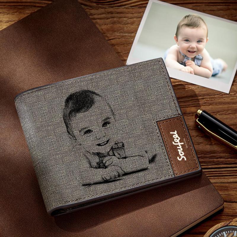Cartera para hombre plegable con inscripción personalizada y foto grabada - Regalo de cuero gris para hombre. Nuestra cartera con foto capturará un momento que se ha ido para siempre. ¡La foto nunca se caerá! Esta billetera con fotos está diseñada para brindarle una manera rápida y fácil de crear un recuerdo único y útil. La tela avanzada y el diseño clásico hacen que la billetera sea aún más elegante. El diseño es muy tradicional, el tamaño es perfecto, los detalles son muy hermosos, realmente tienen la apariencia de una billetera de alta gama. Una vez que realice un pedido, podrá obtener una vista previa de cómo aparecerá en la billetera. Recuerde que la imagen de alta resolución saldrá mejor que la vista previa. Esta billetera es una gran idea de regalo de cumpleaños para todas las edades.