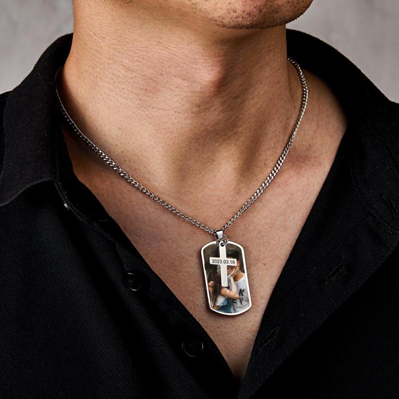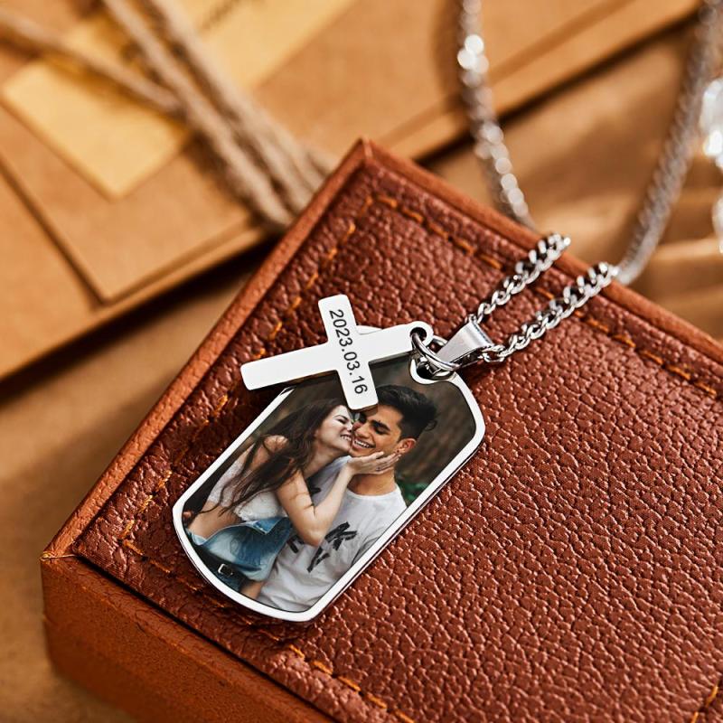 Collar Personalizado Para Hombre, Collar Personalizado Con Foto Y Grabado, Regalo Para Pareja