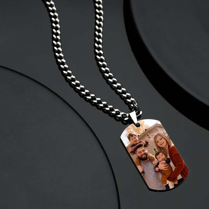 Viste tu atuendo con un collar fabuloso con dijes de Soufeel. Hay tantas opciones prefabricadas diferentes para elegir, sin embargo, también hay maneras de crear sus propias piezas personalizadas. Para algo extra especial, los collares y medallones Soufeel con dijes fotográficos le permiten agregar recuerdos fotográficos que desearán guardar cerca de su corazón. También tienes la opción de pedir cadenas lisas y dijes por separado para que puedas cambiar tu collar cuando quieras. Use collares con uno o más dijes dependiendo de su estado de ánimo de moda para el día. También podría regalarle a un fanático de las joyas en tu vida una variedad de cadenas para que tenga algo en lo que deslizar sus amuletos cuando no quiera usar en pulseras. Collar de hombre con etiqueta con foto y acero inoxidable grabado.