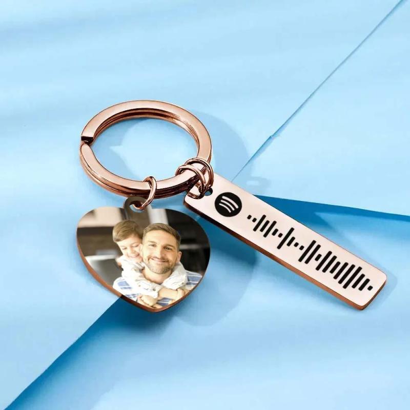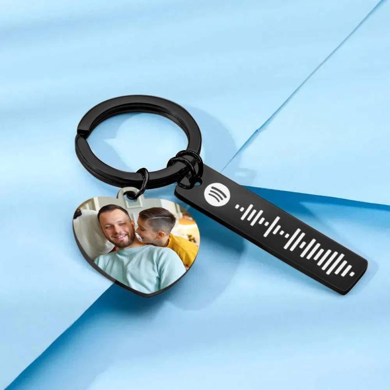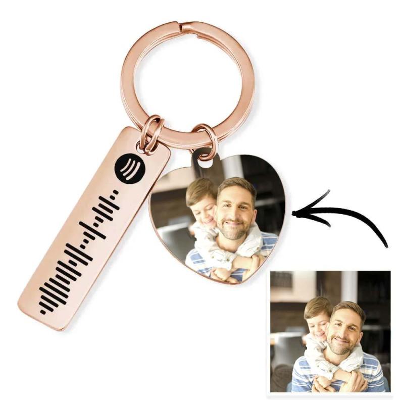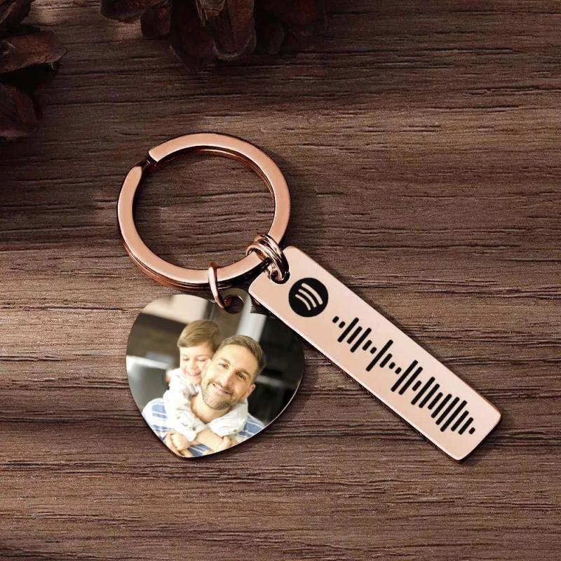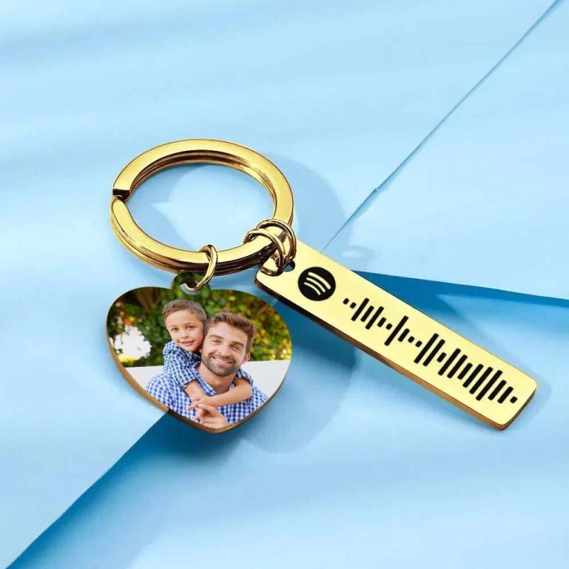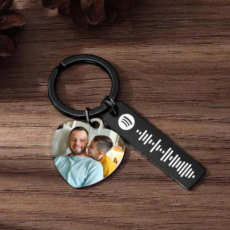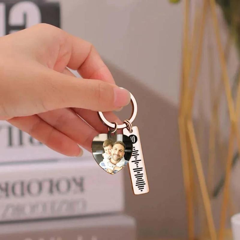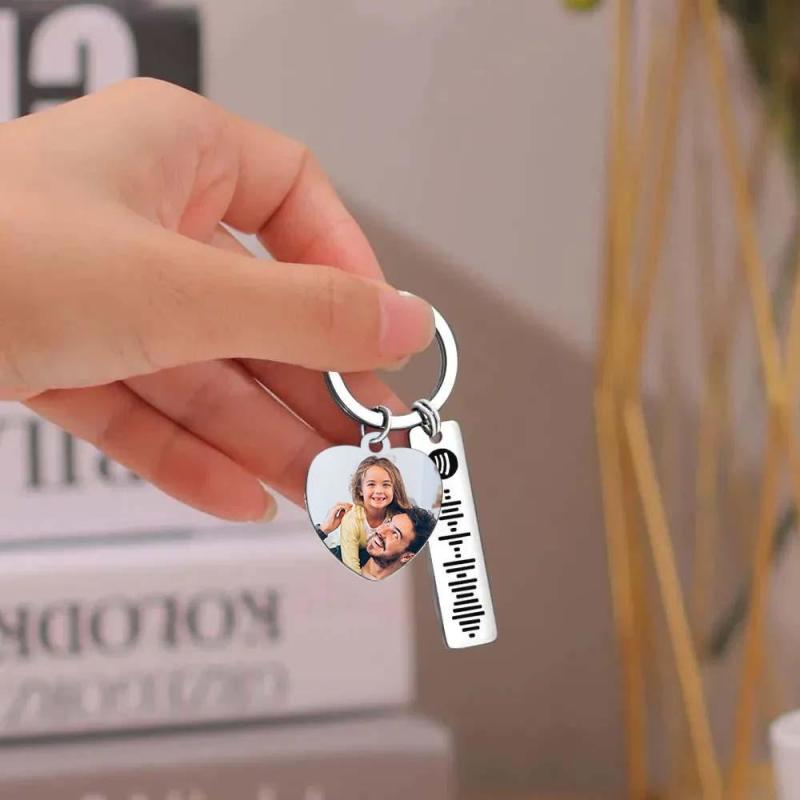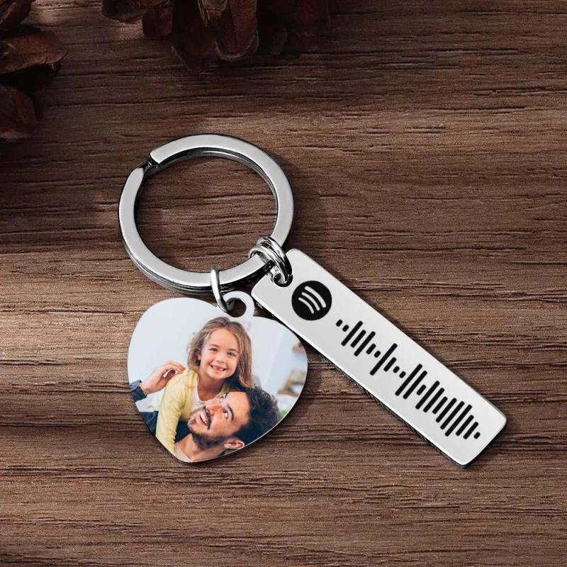 Llavero personalizado de Spotify Imagen personalizada y música Código de canción Llavero con foto de corazón Regalos del Día del Padre para papá