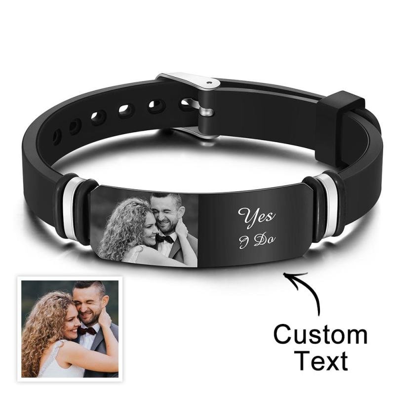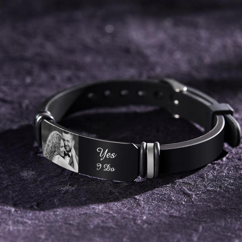 Pulsera Personalizada Para Hombre, Pulsera Grabada Con Foto Personalizada, Regalo De Boda Perfecto Para Pareja De Recién Casados