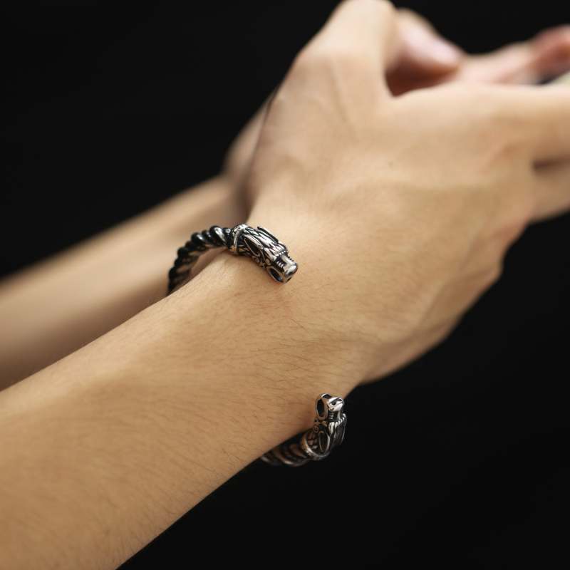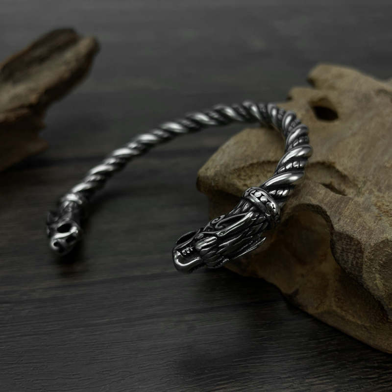 Pulsera Abierta Retro Vikinga Para Hombre, Joyería Con Cabeza De Dragón Dominante