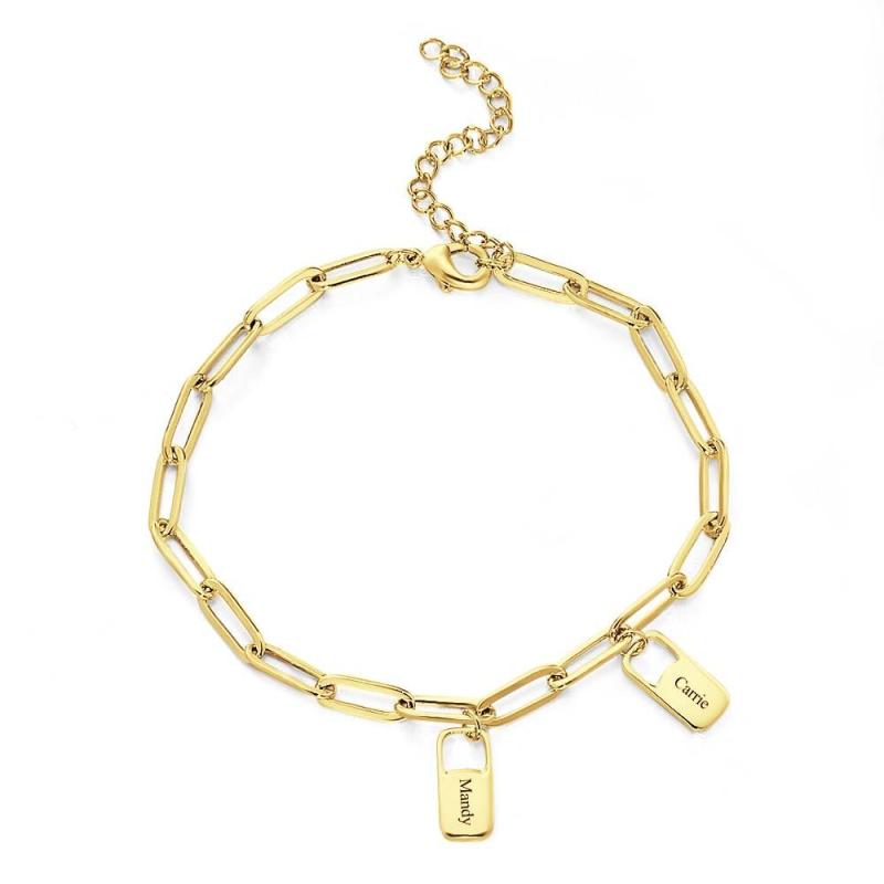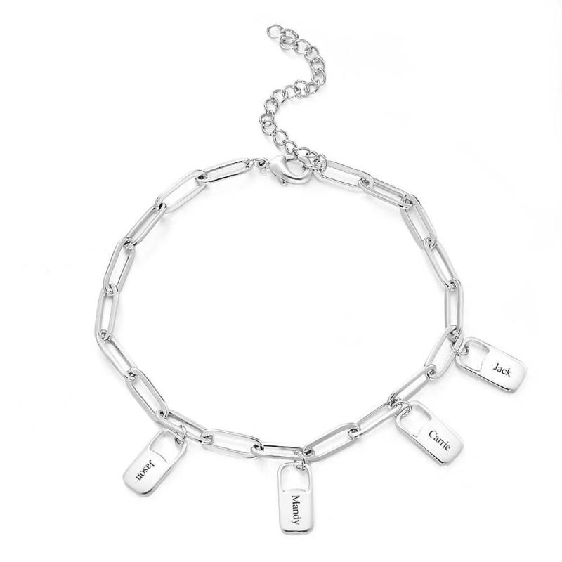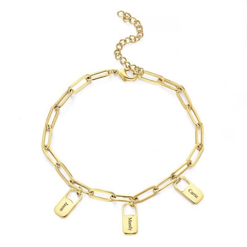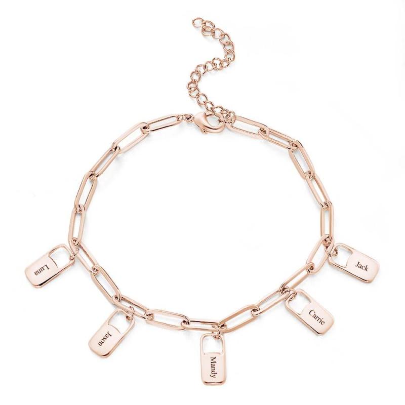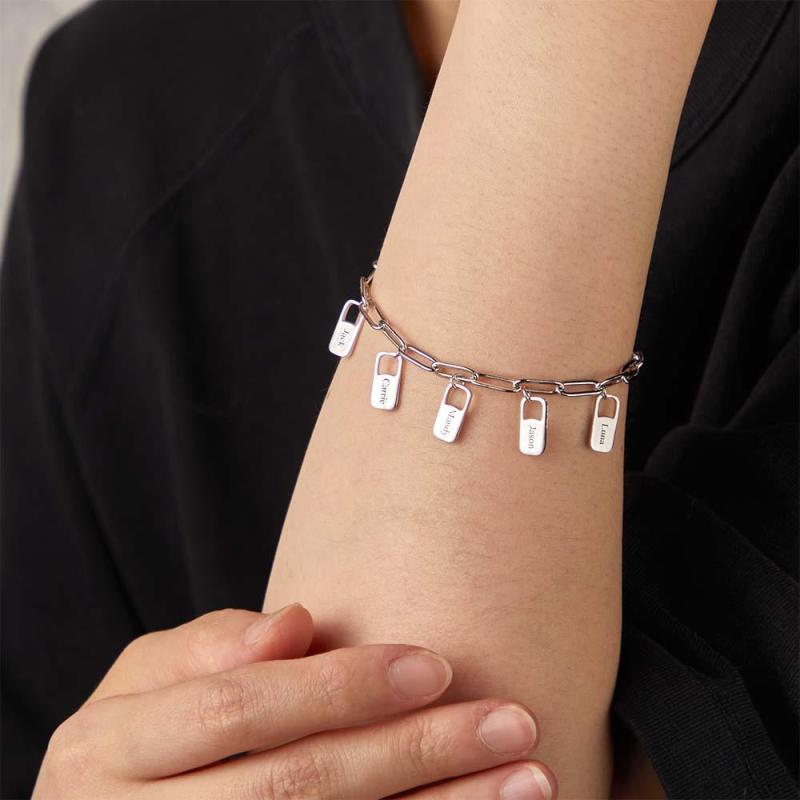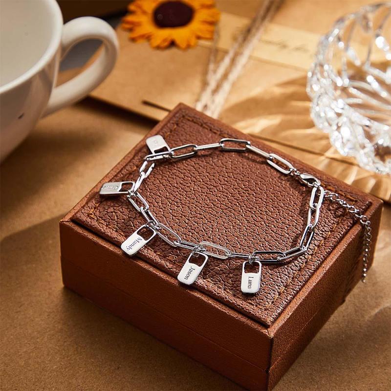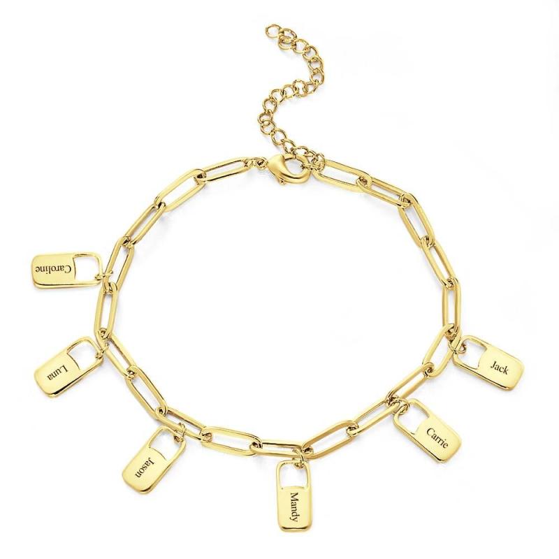 ¡Arriésgate con estilo con la pulsera de eslabones de cadena Rory! Este brazalete es personalizado e incluye hasta 6 amuletos para conmemorar los apellidos de su familia. ¡Haz una declaración y muestra tu audacia con esta pieza única! ¡Conquista la moda cotidiana y destaca con esta pulsera única!