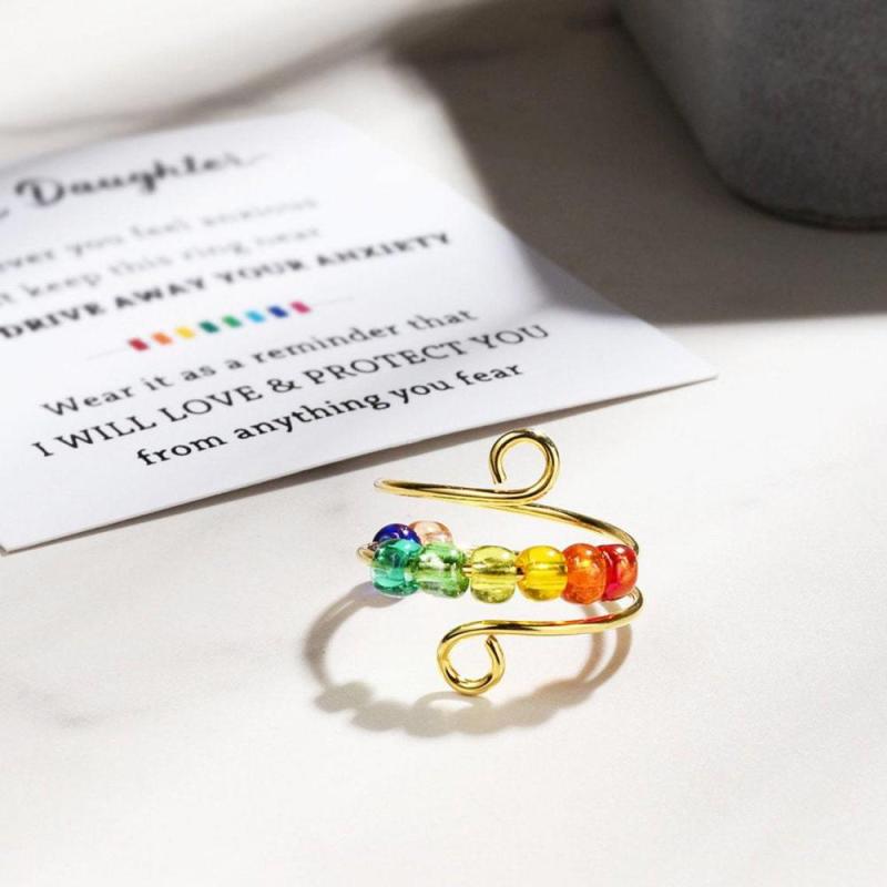 Gira el anillo cuando estés ansioso, este tipo de joyería inquietante podría ponerte de buen humor instantáneamente, ayudándote a deshacerte de rascarte los dedos y morderse las uñas; No solo puede servir como decoración elegante, sino también liberar la presión normal del trabajo y el estudio. Lo que es realmente especial de este anillo es que viene completo con una tarjeta con un mensaje significativo.