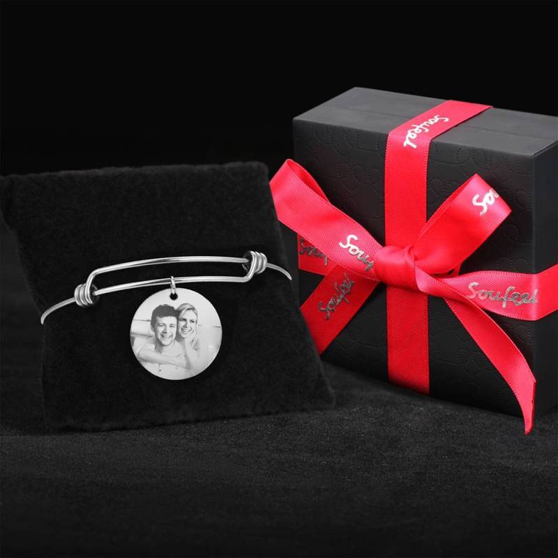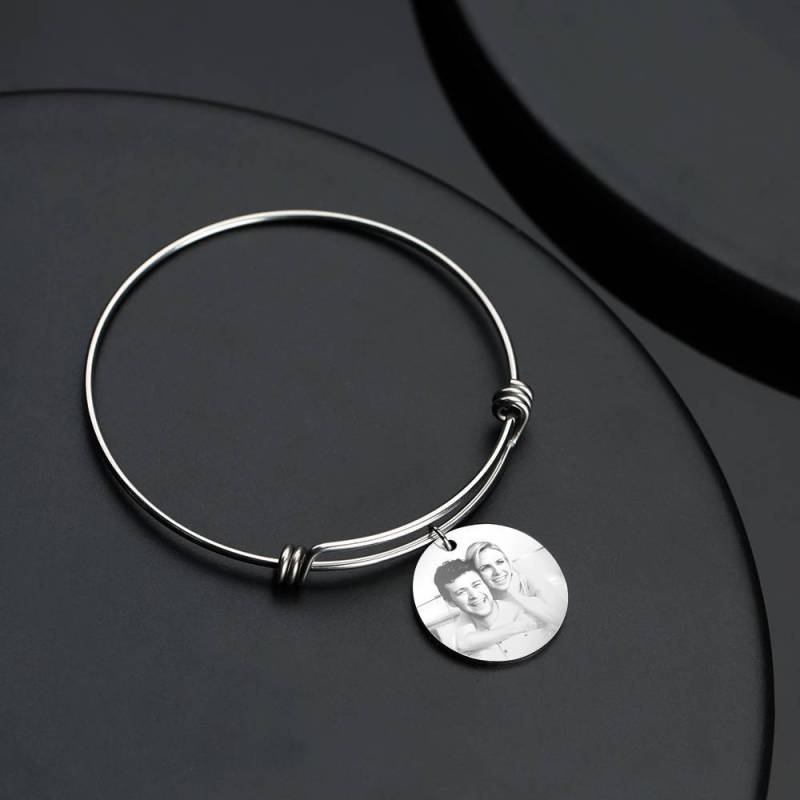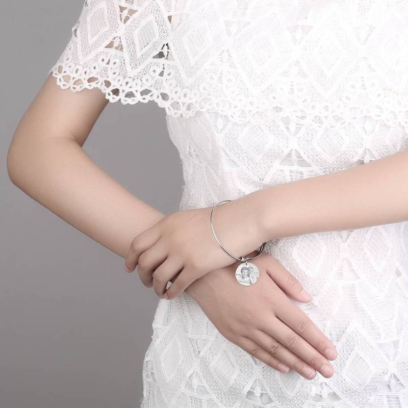 Mujeres Brazalete con Abalorio de Foto Redonda Grabable Acero Inoxidable