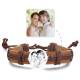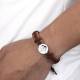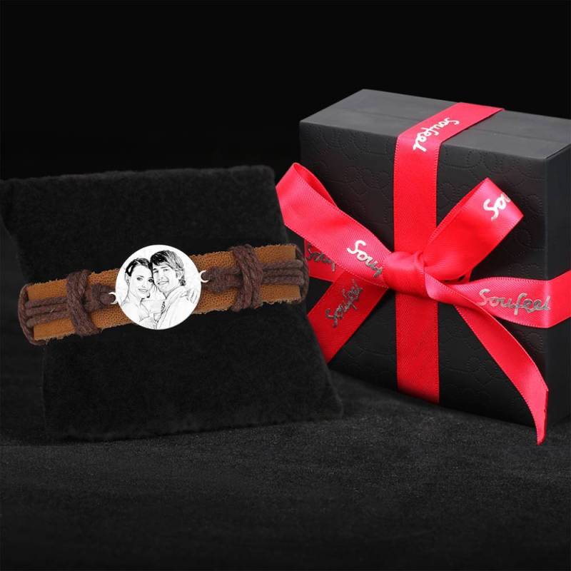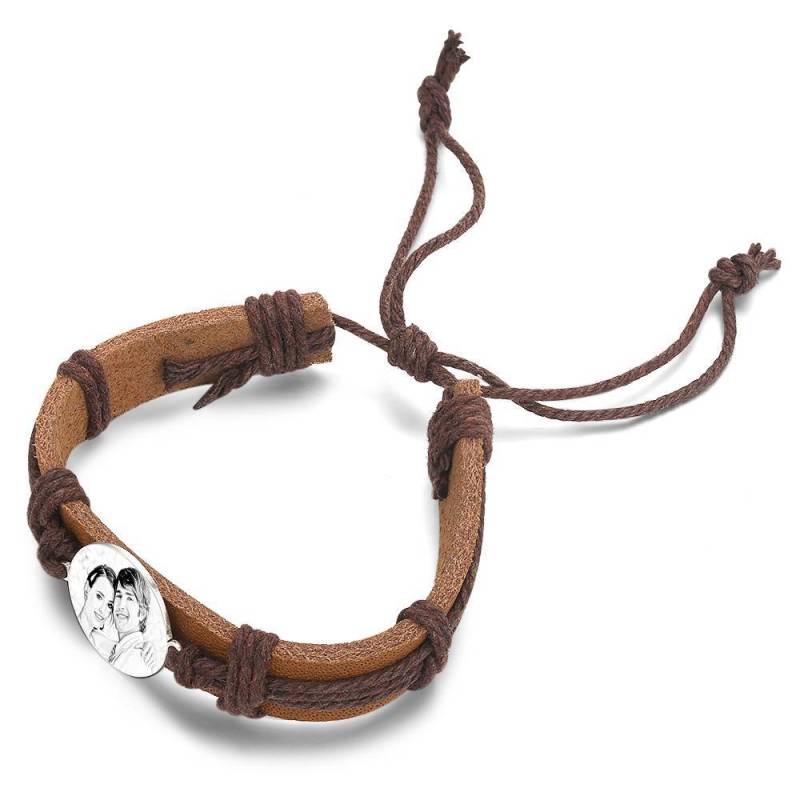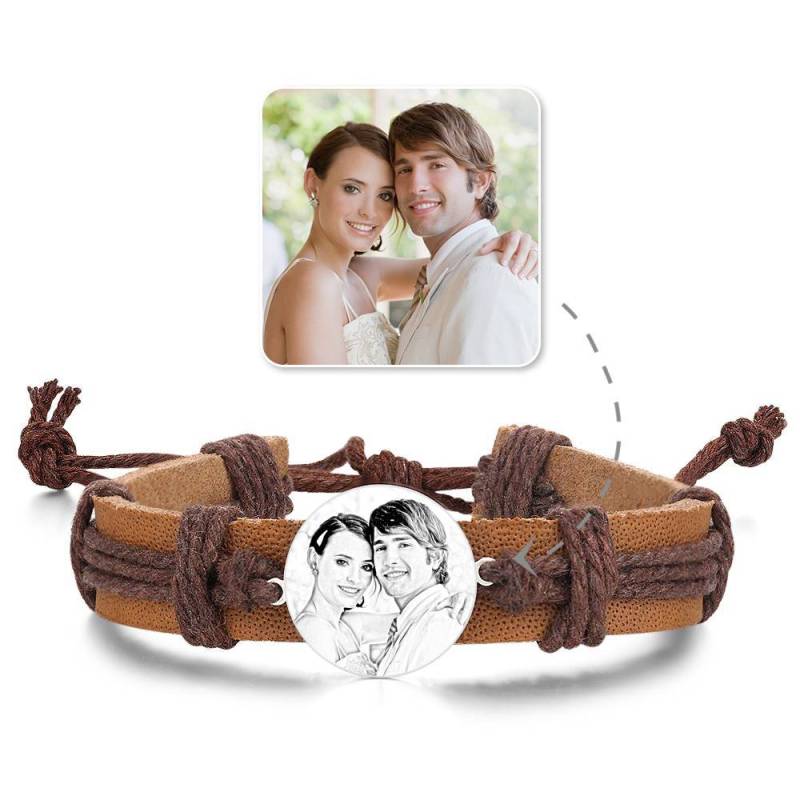 Hombres Pulsera con Etiqueta Redonda de Foto Grabable con Correa de Cuero Negro