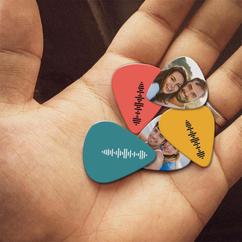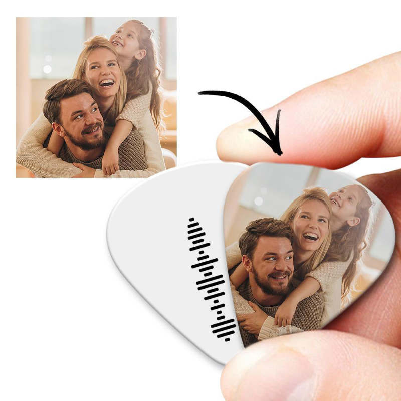 Esta púa de guitarra única es el mejor regalo perfecto para él / ella en Navidad. Personalice el código de música Púa de guitarra, elija el título de la canción, el nombre del artista y las fotos favoritas que desee; todo se puede imprimir en la púa de guitarra y puede generar un código de música único. Tenga en cuenta que la púa de guitarra en sí no emite música. Tienes que escanear el código en la aplicación Música, después de escanear el código en Música, tu canción comenzará a reproducirse de inmediato. En Navidad, creo que este es el regalo más romántico, toca la música más hermosa para tu amor.
