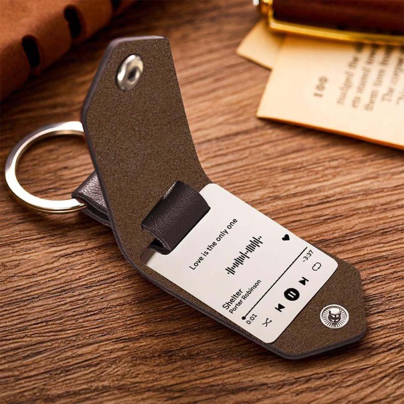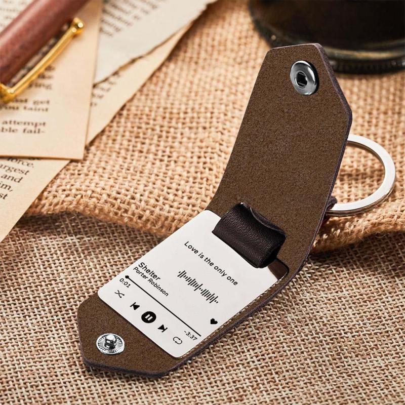 Conduce Seguro Llavero De Código De Música Escaneable, Llaveros De Canción De Música Grabados Personalizados, Regalos De Cuero Para Pareja