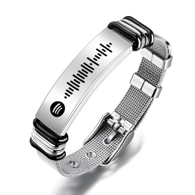 Pulsera Con Código De Spotify Escaneable, Pulsera Para Hombre, Pulsera Personalizada Con Canciones Musicales, Regalos De Acero Inoxidable Para él