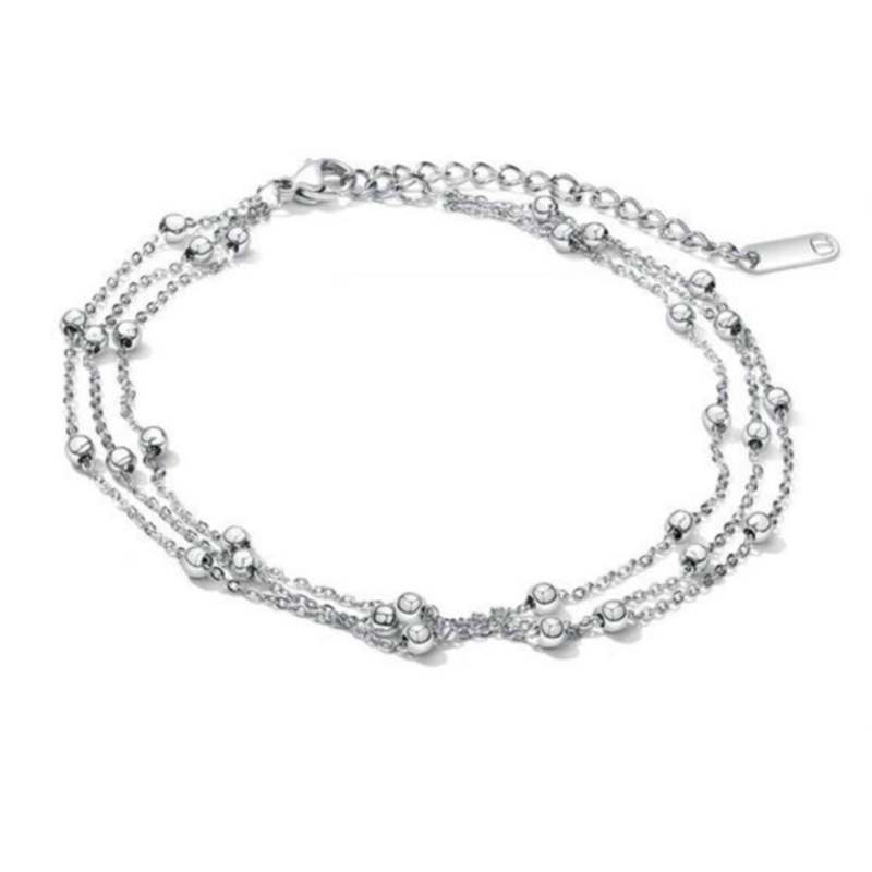 Tobilleras De Múltiples Capas Con Cuentas De Plata