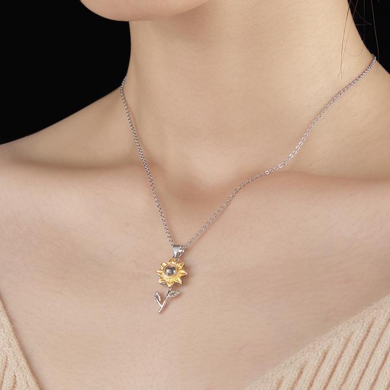 Collar De Proyección De Girasol Estereoscópico De Plata, Colgante De Foto Conmemorativo Personalizado, El Mejor Regalo Para Amiga
