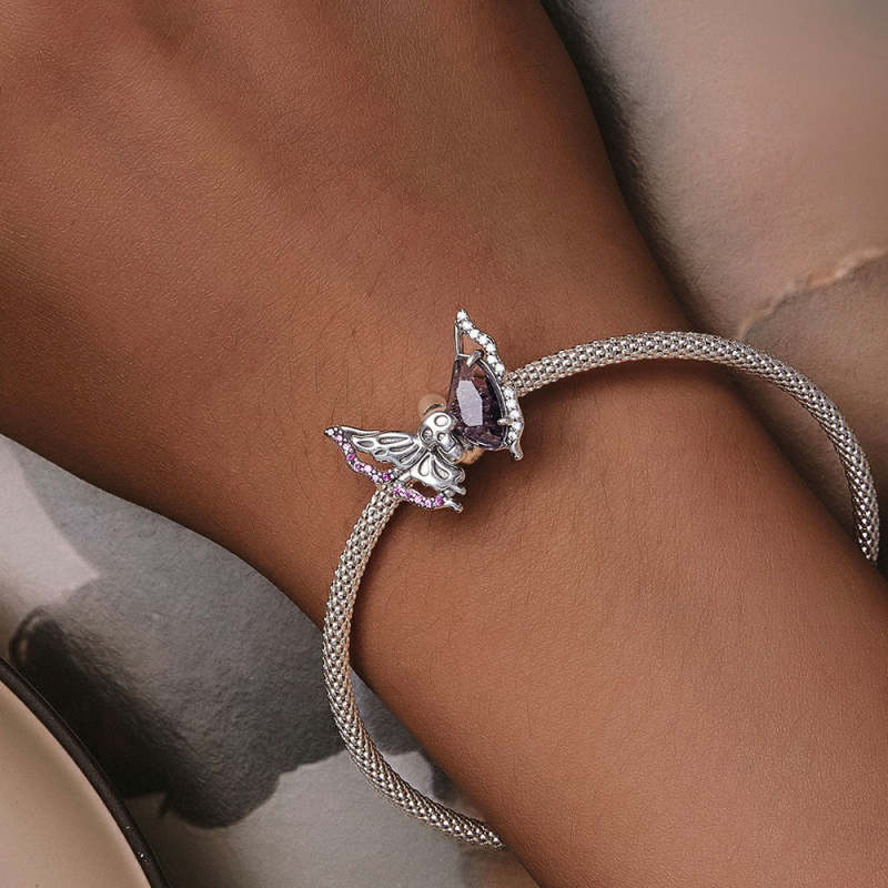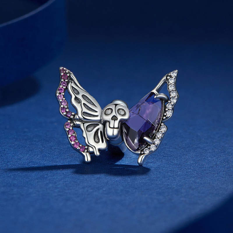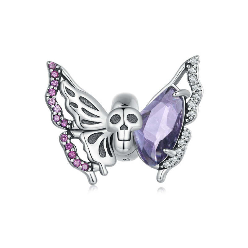 Ciondolo Distanziatore Con Ciondolo A Farfalla Con Teschio, Argento