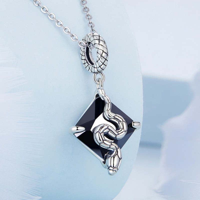 Charm Colgante Serpiente sobre Negro Plata