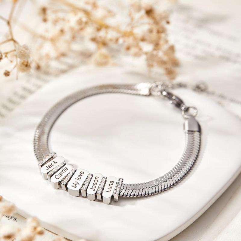 Cadenas En Forma De Serpiente Con Cuentas Familiares De Diamantes Personalizadas Personalizadas Con El Nombre De La Familia, Un Regalo Especial Para La Pareja