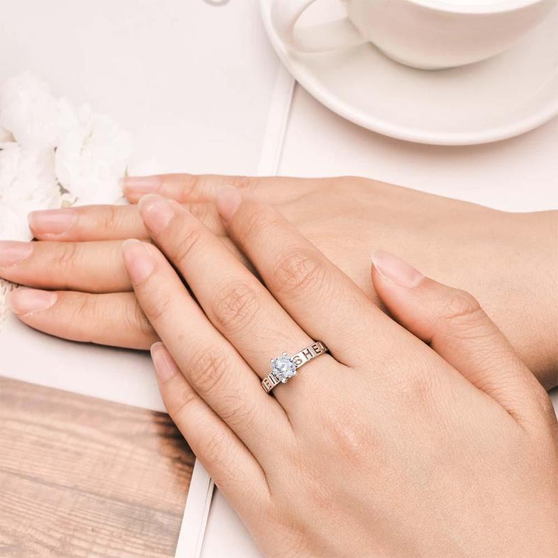 Crea un recuerdo hermoso y significativo con este anillo personalizado. Elige tu propia piedra y graba hasta dos expresiones de amor en el vástago para obtener una pieza de joyería verdaderamente personalizada.