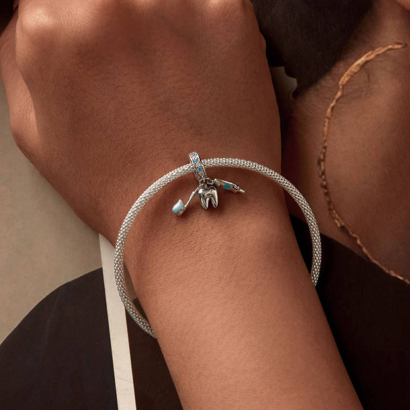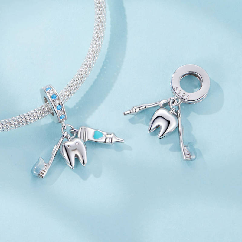 Set Di Ciondoli In Tre Pezzi Per Spazzolatura Dei Denti Con Ciondolo Pendente In Argento
