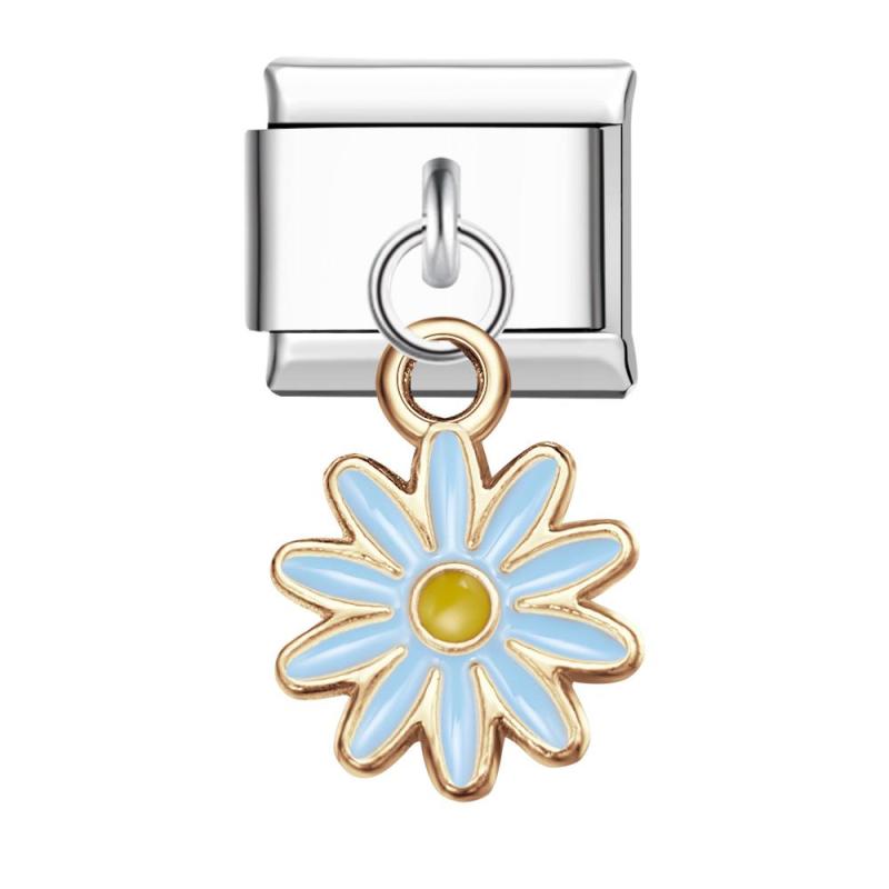Charm Italiano Flor De Diez Pétalos Azul Para Pulseras Italianas Charm Enlace Componible
