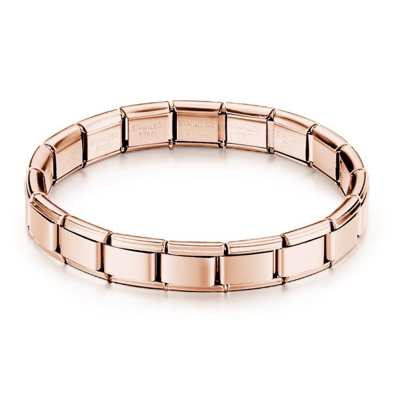 Nuestras pulseras están hechas de 18 eslabones Italian Charm que se expanden o contraen para abrazar su muñeca perfectamente. Puede agregar o eliminar enlaces fácilmente como mejor le parezca. Hecho de acero inoxidable resistente al agua, duradero y de alta calidad que nunca dejará su muñeca verde. Elegante, cómoda y elegante de llevar, esta pulsera es el regalo perfecto para cualquier ocasión.