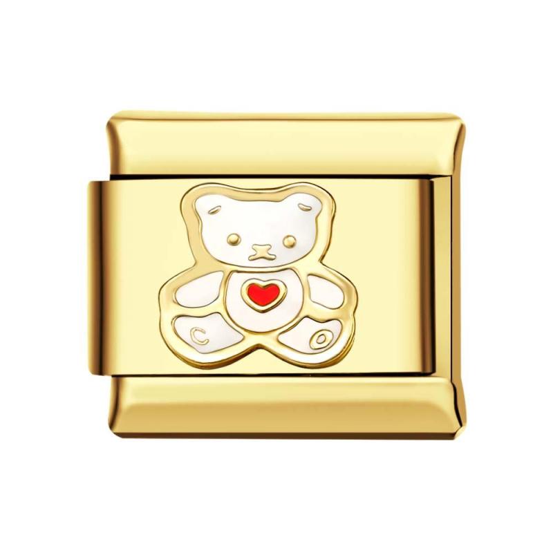 Charm Italiano Oso Blanco En Oro Para Pulseras Charm Italianas Enlace Componible