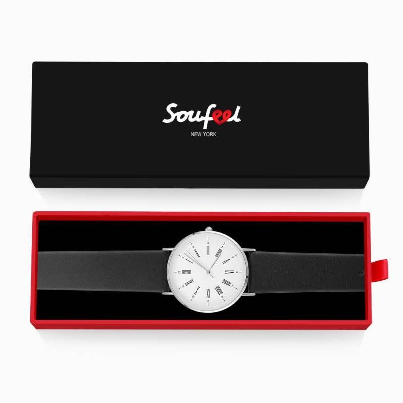 Soufeel adopta los movimientos de reloj fabricados por el fabricante líder mundial de movimientos Ronda en Suiza y Citizen en Japón, disfrutará del tiempo preciso que desee. Vida diaria resistente al agua. Es una verdadera declaración de dise?ador y el reloj perfecto para cualquier ocasión. Este reloj tiene un dise?o simple y único, con una caja delgada, puede combinar fácilmente cualquier tipo de accesorios. Este reloj clásico es un regalo perfecto para usted o sus amigos de una manera elegante y lujosa. Soufeel tiene un montón de opciones de joyería personalizadas que tienen un precio razonable y son excelentes regalos para todo tipo de ocasiones como cumplea?os, días festivos, aniversarios. ?Es genial para capas, una maravillosa pieza minimalista, un regalo perfecto para su esposa, novia, esposo, novio o simplemente para darle un capricho! Reloj Moderno Cuarzo de Esfera Blanca con Correa de Cuero Negro Reloj del Negocio - Mujeres.