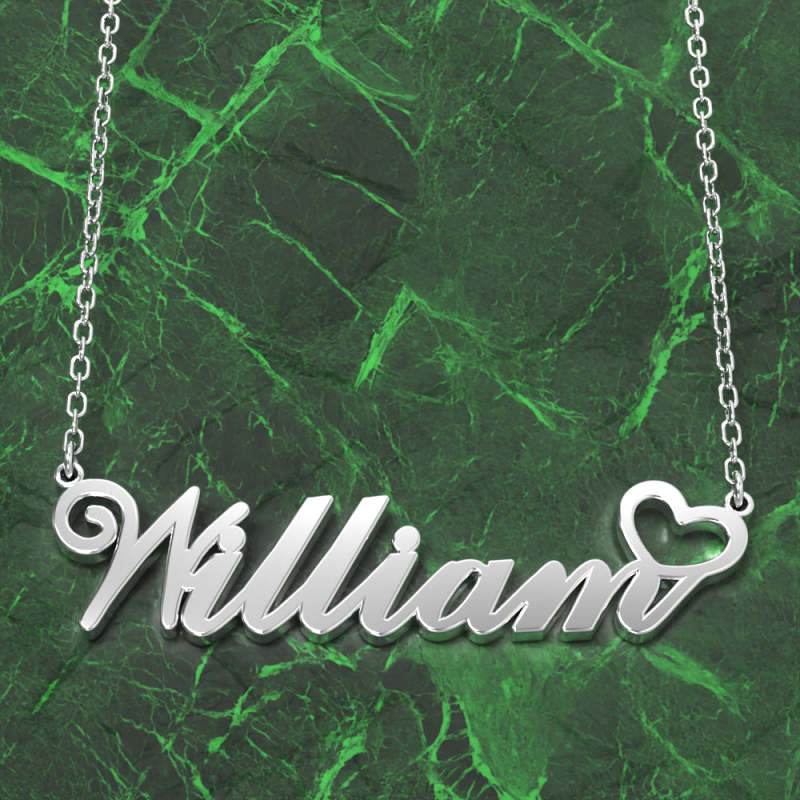 William Collar Con Nombre Plata Antioxidante Collar Personalizado Con Corazón, Regalos Personalizados Para Ella