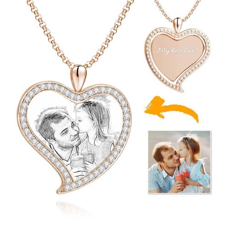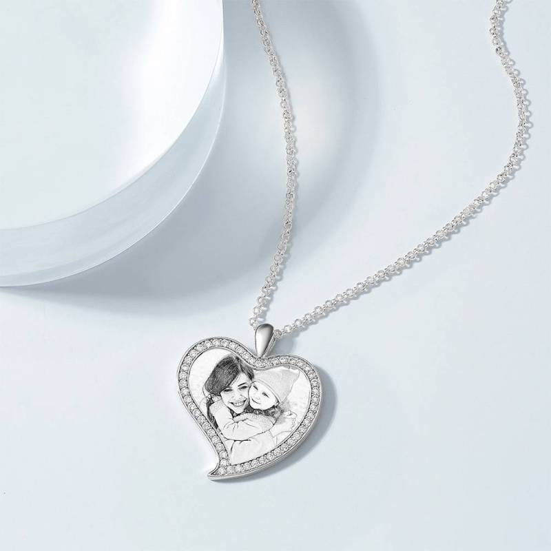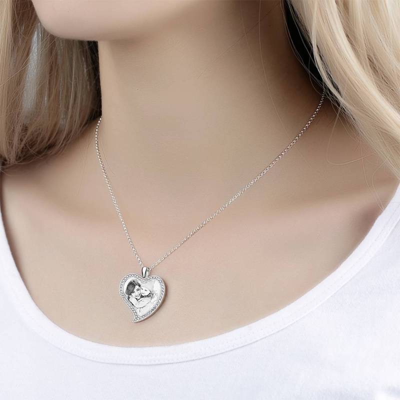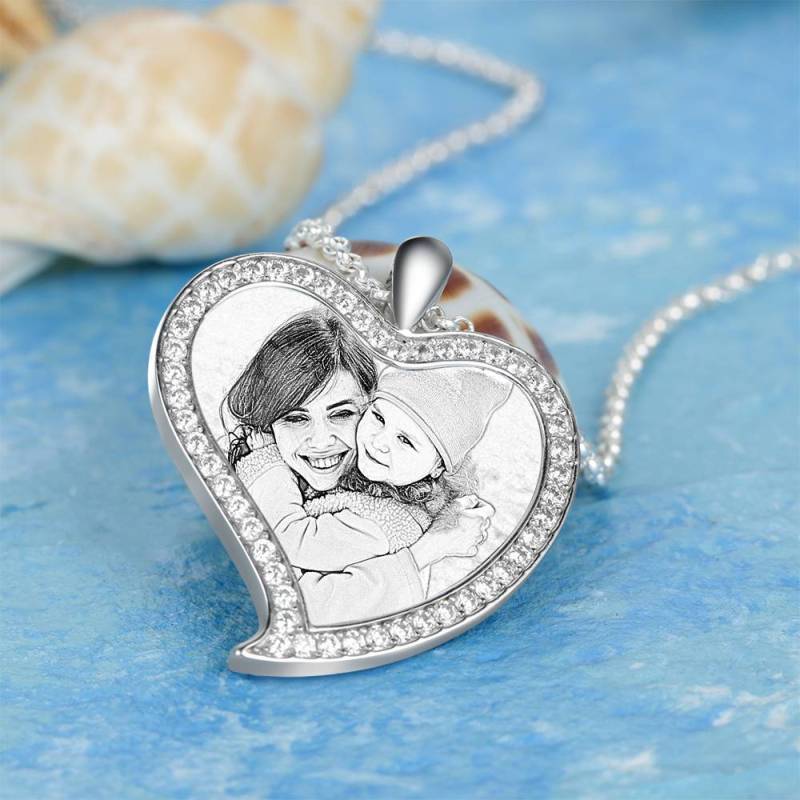 Custom Soufeel Tag de acero inoxidable foto colgante es la manera perfecta para mantener sus mayores recuerdos cerca del alma. Este collar de fotos personalizado está hecho de acero inoxidable resistente, que nunca va a manchar, entonces usted puede sostenerlo por muchos a?os. ?El regalo pensativo, divertido y original perfecto para cualquier ocasión! Soufeel tiene una tonelada de opciones de joyería personalizada que son precios razonables y hacen para grandes regalos para todo tipo de ocasiones como cumplea?os, días de fiesta, Día de los padres. Collar de la mujer grabable con foto personalizada, Collar con fotos formade amor del corazón de plata con Cristal Strass de platino plateado - bosquejo.